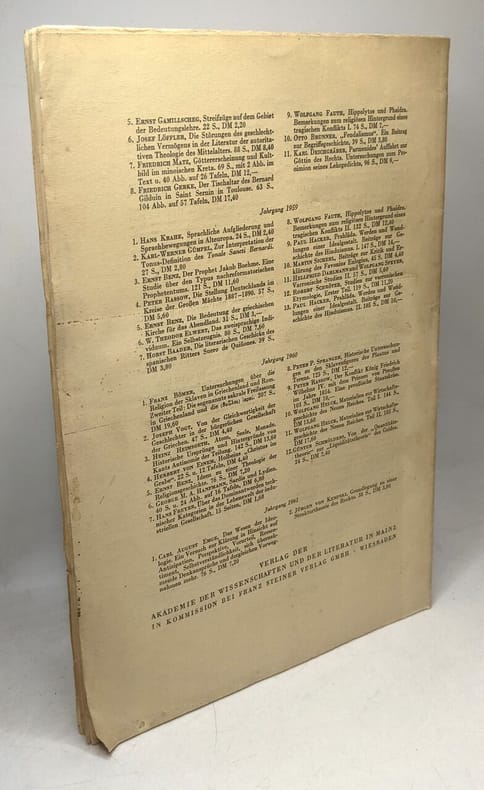 Akademie der wissenschaften und der literatur 1961 in8. 1961. Broché.