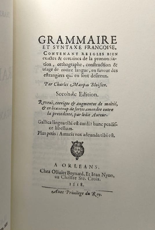 Bon état (reliure postérieure, bon exemplaire par ailleurs). Rare exemplaire de cette grammaire française rédigée par Denis Gaullyer (1688-1736), né Cléri dans l'Orléanais. Il commença ses études au collège d'Orléans et les acheva à Paris ; dans sa notice sur la vie et les oeuvres de Jean Heuzet, Ernest Berlemont indique à propos de Gaullyer : "sa vanité excessive dégénéra en folie ; il mourut à Charenton le 24 avril 1736 (Cf Mémoire de la Société Académique de Saint-Quentin, 1890, 144).