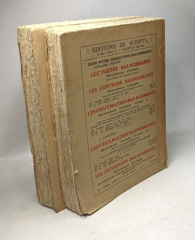 Saint-Lô (Manche), Editions de Scripta, s.d. (1943), pt in-8°, 254 pp, (I-XIV [titre, le mouvement anthologique bas-normand, remerciements, préface]-15-254 pp), préface de Jean de La Varende et biographies des auteurs par plusieurs écrivains normands, un des 500 ex. sur papier bouffant constituant l'édition revue et corrigée, broché, bon état