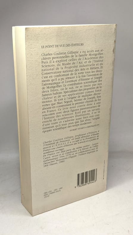 Actes Sud, Arles, 1989, in-8, 328 pp, Broché, couverture imprimée de l'éditeur, Essai traduit de l'américain par Marc Rolland et Bernadette Hou. Charles Coulston Gillispie, professeur d'histoire à l'université de Princeton, est aussi directeur d'études associé à l'E.H.E.S.S. Il a occupé à la fondation de france une chaire d'histoire des sciences. Ce livre est une rencontre avec deux figures passionnantes de l'histoire des sciences. De très nombreuses photos illustrent ce bel ouvrage. Couverture rigide
