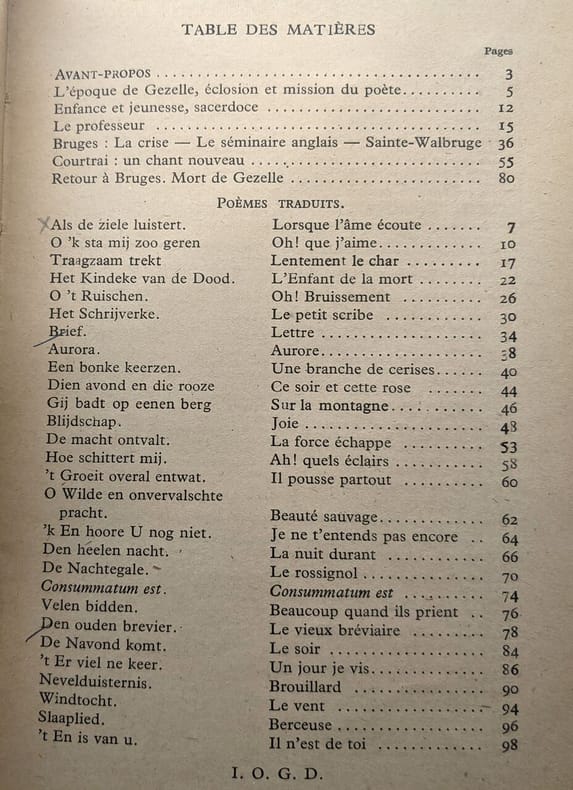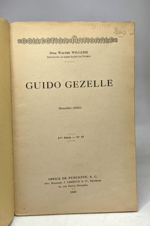 Verschillende werken werden in dit boek samengebonden : Rommel : Guido Gezelle Sa Vie et Ses Travaux, Bruges 1900/ Verriest : Eeredeag van Guido Gezelle, 1902/ Van Herwerden : Mannen en vrouwen van beteekenis in onze dagen : Guido Gezelle; Tjeenk Willink, 1903 en Guido Gezelle Zijn Leeven en Zijne Werken, Gent, Siffer, 1900. Rug lost beetje van boekblok, aantekeningen in potlood op allereerste pagina.