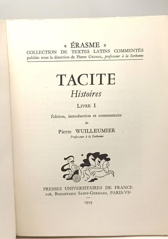 Société d’Edition “Les Belles Lettres”, coll. « Universités de France » 1977 Livre VI seul du texte “Histoires”de Polybe. Texte français-grec ancien en regard. In-12 reliure éditeur simili cuir noir. Dos lisse avec titre doré et premier plat avec fer. 19,5 cm sur 13. 159 pages. Notice et notes complémentaires. Plan replié in fine. Menus frottements sur les plats sinon bon état d’occasion.