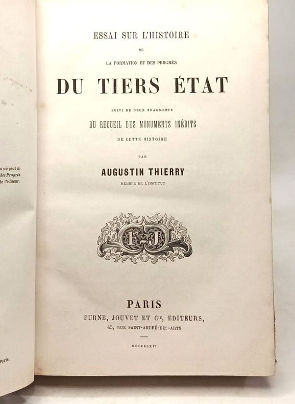 Paris, Garnier Frères, s.d. (écrit en 1853). In-12 relié demi-veau, dos à nerfs, 536 p. Nouvelle éd., "revue avec le plus grand soin". Avec appendices. Très bon état : rousseurs.Oeuvres de Augustin Thierry IX.