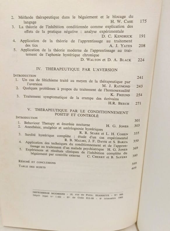 Cahiers de psychologie clinique et de psychopathologie générale. Sommaire : PANKOW (G.) : Image du corps et médecine psychosomatique .ROGNANT (J.) : Conditionnement et déconditionnement dans les névroses. DOCUMENTS CLINIQUES ET PSYCHOPATHOLOGIQUES. Colloque. Régression et fantasmes en relaxation » (animé par M. SAPIR) ..RAIMBAULT (G.) et ZYGOURIS (G.) : La consultation hospitalière (du dialogue audiscours) . AMMAR (SI.) et LEJDRI (H.) : Conditions familiales et développement de la schizophrénie. ACTUALITÉ PSYCHIATRIQUE. COVELLO (L.) et (A.) : Epilepsie, symptôme ou maladie (analyse de R. ANGELERGUES) JACOB (F.) : La logique du vivant (analyse de R. ANGELERGUES) ..KESTENBERG (E.) et (J.) et DECOBERT (S.) : La faim et le corps (analyse de R. ANGELERGUES) .SOULE (M.) et NOËL (J.) : Le grand renfermement des enfants dits «cas sociaux » (analyse de J. COURNUT) ..BETTELHEIM (B.) : Les blessures symboliques (analyse de P. LASSERRE). NOTES DE LECTURE. Livres de R. BOYERS, de G. HOGOUENHEM, de J. O. MAJASTRE, de W. REICH, de H. DAUN, de J. CASTONGUAY, de H. E. EHRHARDT, de G. VILLARS, de G. CLARIDGE, de R. GORI et Y. POINSO, de A. et M. MITSCHERLICH, de Y. DURAND et J. MORENON, de J. CHAZAUD, de D. T. MACLAY, de E. ABELIN.PAGES D’INFORMATION. Nécrologie : Daniel LAGACHE .Actes de la Société .XXI* Assemblée des Sociétés de Croix-Marine .Lettre ouverte de R. CAHEN à Jean LACROIX .Thérapie comportementale .Informations ..Bibliographie .. Classification Dewey : 150-Psychologie