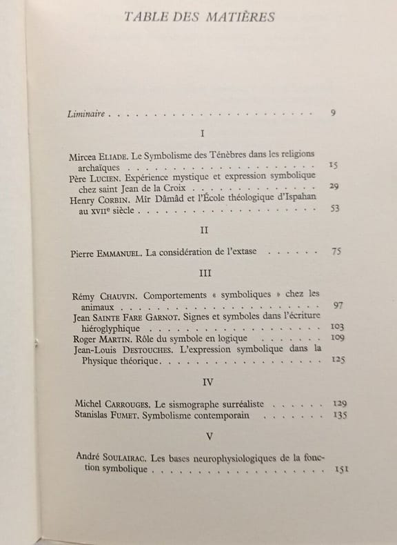 SOMMAIRE : LE SYMBOLISME DES TENEBRES DANS LE RELIGIONS ARCHAÏQUES - EXPERIENCE MYSTIQUE ET EXPRESSION SYMBOLIQUE CHEZ SAINT JEAN DE LA COIX - L'EXPRESSION SYMBOLIQUE DANS LA PHYSIQUE THEORIQUE. ETC. Classification Dewey : 200-RELIGION