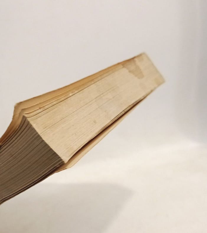 couverture défraîchie tranche tachée sur le dessus réparations au scotch sur le dois