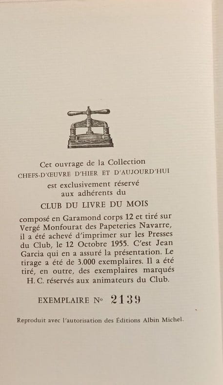 Club du livre du mois 1955 in8. 1955. Cartonné.