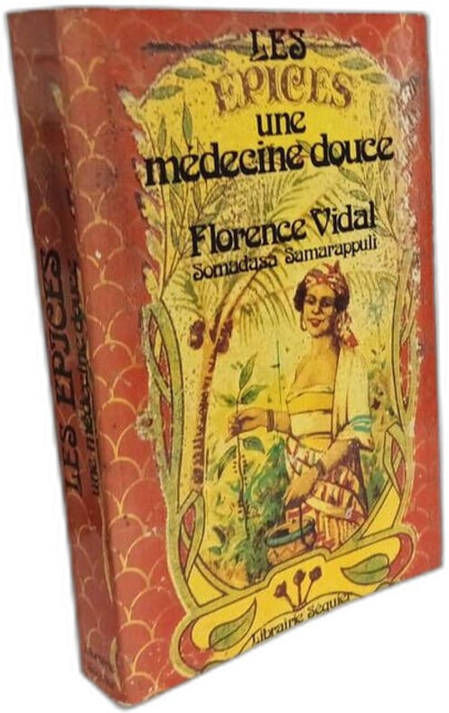 Paris, Garamont-Archimbaud et Librairie Ségiuer, 1987, EDITION ORIGINALE, in-8, br., couv. ill. coul. éd., 380 pp., dessins de Florance Vidal, Indications en phytothérapie, Adresses utiles, Bibliographie, Table des recettes, Table des matières, Exploration des divers avantages des épices dans le domaine de la santé, de la beauté et de la cuisine. Une des deux auteurs est originaire de Ceylan où est pratiquée la médecine ayurvédique. Pas courant. Très bon état