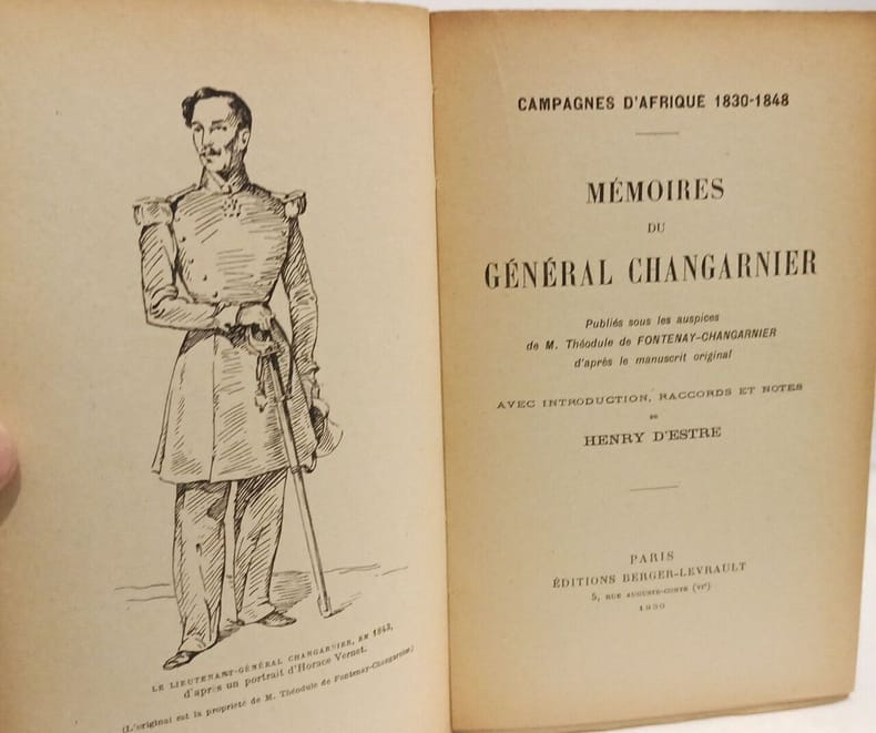 Berger-levrault 1930 708 pages in8. 1930. mass_market. 708 pages. Campagnes d'Afrique 1830-1848. Mémoires du général Changarnier publiés sous les auspices de M. Théodule de Fontenay-Changarnier d'après le manuscrit original avec introduction raccords et notes de Henry d'Estre