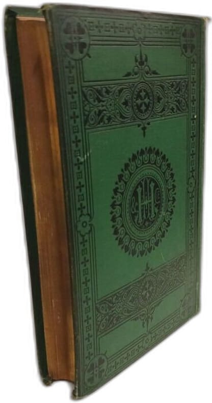 1876 Paris, Hetzel, sans date [1876]. In-8 (167 X 241 mm) percaline vert lierre, premier plat orné d'un grand médaillon central avec le titre doré en réserve, entrelacs de filets en noir et de rinceaux et volutes dorés, second plat orné en noir avec macaron central, dos lisse orné de même, auteur et titre doré, tranches dorées, gardes brique (reliure de l'éditeur) ; (2) ff. de faux-titre et titre imprimé en rouge et noir, frontispice, II pages d'avis au lecteur, 239 pages, (1) page, (8) pages de catalogue «2 bis ». Larges rousseurs claires.