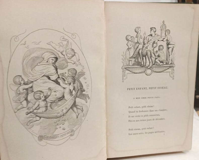 ÉDITION ORIGINALE de ce recueil de poésies de Victor de LAPRADE (1812-1883), poète religieux et royaliste, inspiré par l'oeuvre de Lamartine et Chateaubriand. (Vicaire, tome V-30). BEAU CARTONNAGE VERT décoré de l'éditeur HETZEL. Un frontispice et 22 illustrations hors-texte en noir de E. FROMENT. Cartonnage en PARFAIT ÉTAT, tranches bien lisses. BEL EXEMPLAIRE, malgré les rousseurs présentes dans le corps d'ouvrage. NICE COPY. PICTURES AND MORE DETAILS ON REQUEST.