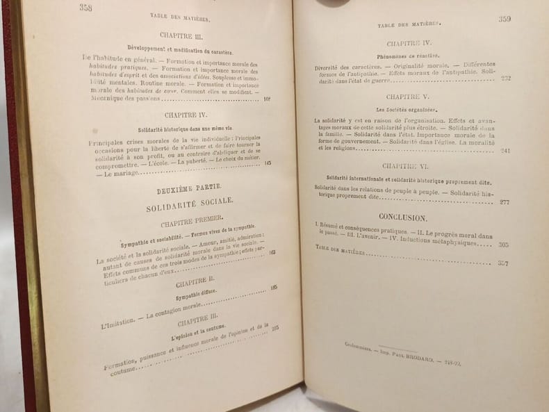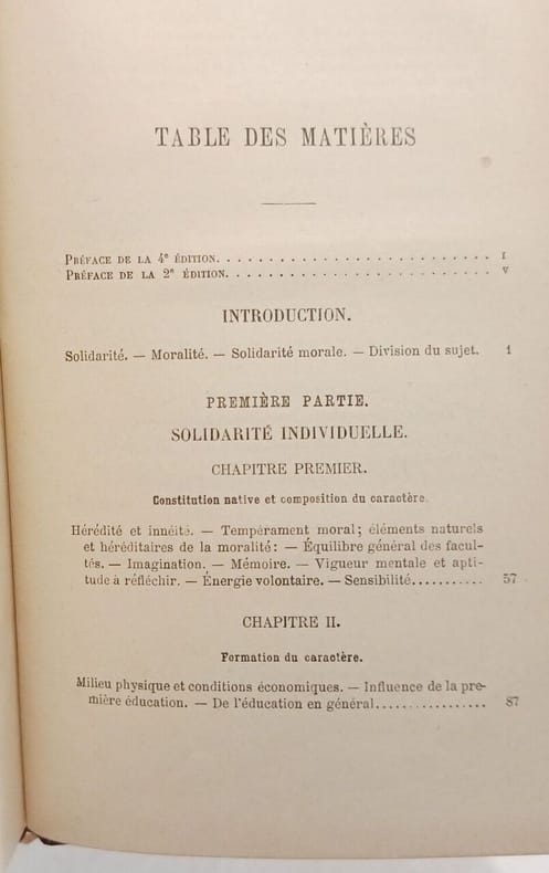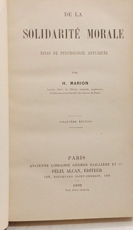 Paris, Félix Alcan, 1907. In-8 reliure percaline noire, sur le 1er plat, en médaillon doré, "collège de jeunes filles de Grasse". VIII-359 pp. (tampon de bibliothèque en haut de la page 1). - Solidarité individuelle - Solidarité sociale.