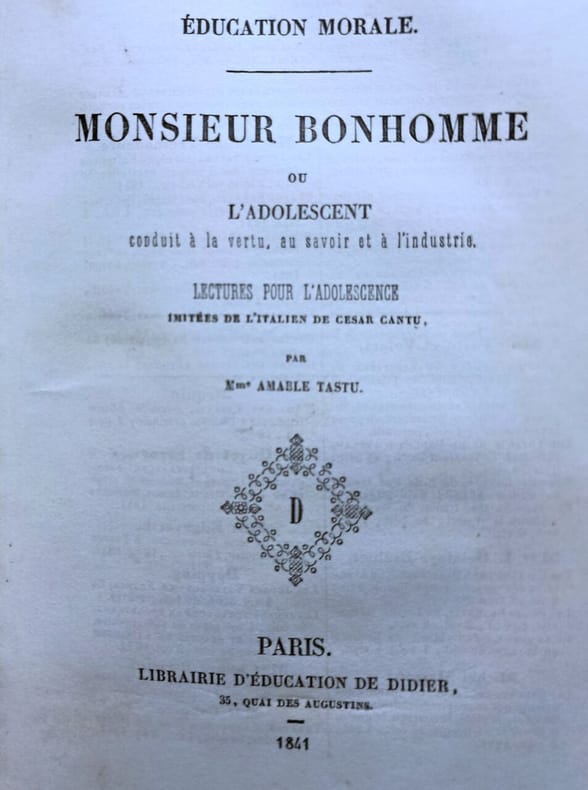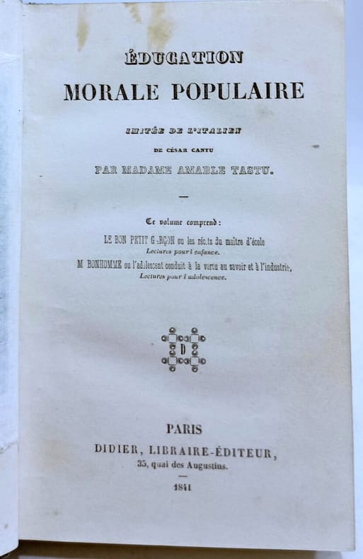 Didier 2025 in12. 2025. Relié. Éducation morale populaire imitée de l'italien de César Cantu: Ce volume comprend: Le bon petit garçon ou les récits du maître d'école Lectures pour l'enfance M. Bonhomme ou l'adolescent conduit à la vertu au savoir et à l'industrie Lectures pour l'adolescence