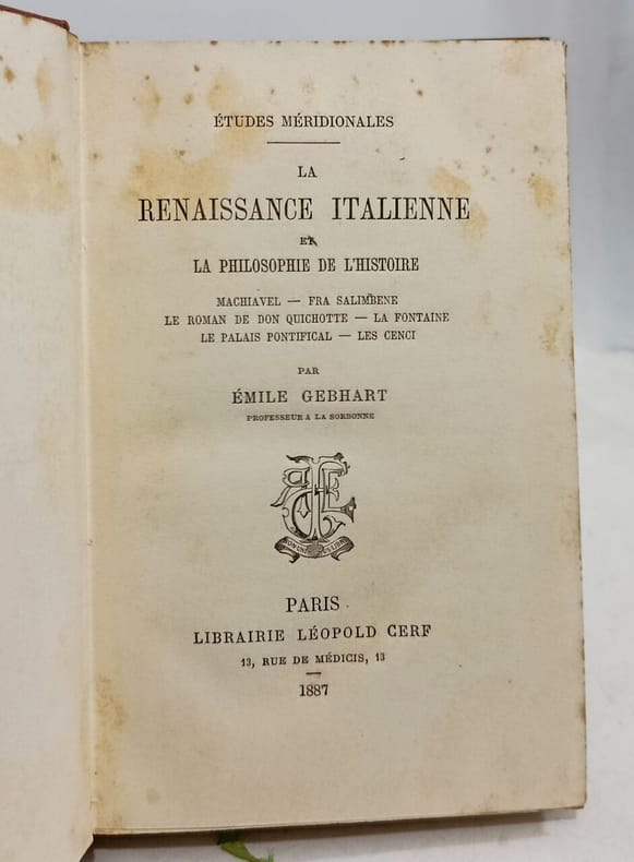 LEOPOLD CERF. 1887. In-12. Broché. Etat d'usage, Couv. légèrement passée, Coiffe en pied abîmée, Intérieur frais. 270 pages. Dos fané.. . . . Classification Dewey : 945-Italie