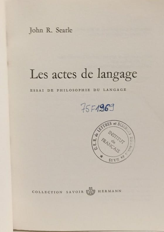 édition de 1988 Contents, Chapitres : Oswald Ducrot : De Saussure à la philosophie du langage - 1. Théorie des actes de langage : Méthodes et objet - Expression, signification et actes de langage - Structures des actes illocutionnaires - La référence comme acte de langage - La prédication - 2. Quelques applications : Trois erreurs de la philosophie contemporaine - Problèmes de référence - Dérivation du doit à partir de est - Index - John Rogers Searle, 1932-, est un philosophe américain qui s'est particulièrement intéressé à la philosophie du langage et à la philosophie de l'esprit. Il a fait sa carrière en tant que professeur de philosophie à l'Université de Californie, Berkeley. La philosophie du langage de John Searle bénéficie de l'héritage de Peter Strawson et de John Austin. On lui doit en particulier une classification des actes de langage. (source : Wikipedia) bon état, intérieur frais et propre