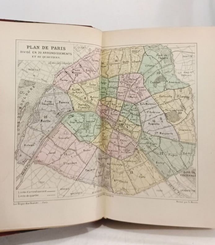 Un volume in-8°, reliure cartonnage éditeur percaline grise avec un premier plat orné (emblème de Paris et vues de plusieurs sites gravés en bleu) encadrant le titre, le nom de l’auteur et celui de l’éditeur en lettres dorées. Le dos est orné lui aussi d’un motif classique et des mentions titre, auteur, éditeur et avec des bords biseautés (le 2ème plat porte l’emblème : Caisse des Écoles du IX arrondissement). L’ouvrage compte 495 pages plus une Table des gravures. Excellent ouvrage pour qui veut avoir une idée claire de PARIS et de sa population dans les années 1890. Cartonnage éditeur, en TRES BON ETAT.