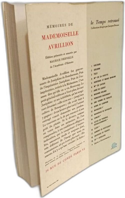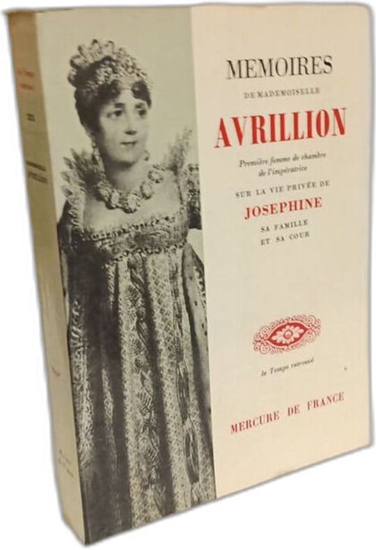 Mercure de France "Le Temps retrouvé n°19" 1969, in-8 broché, 380 p. (très bon état ; épuisé dans la collection) C'est le témoignage fondamental sur Joséphine de Beauharnais, que l'auteur servit fidèlement , même quand l'ex-impératrice se retira à la Malmaison.