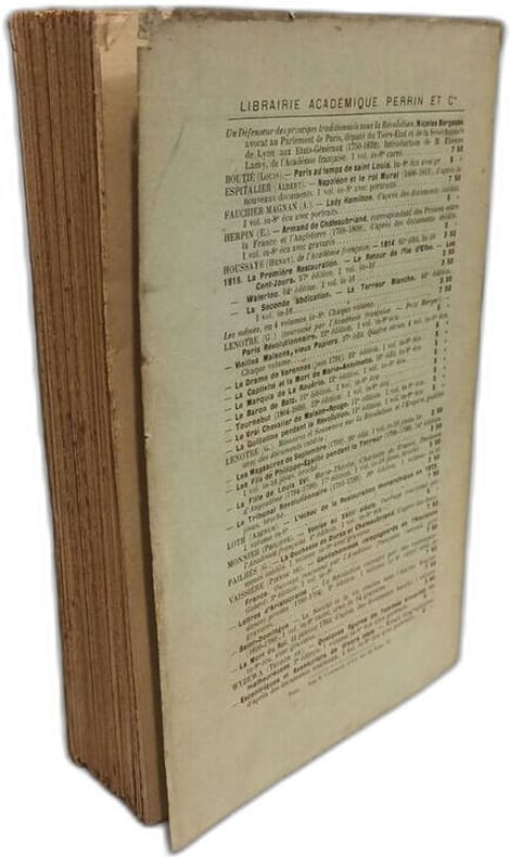 Librairie Académique Perrin 14 x 23 Paris 1910 In-8, broché, VI-519 p. Ouvrage orné de deux portraits. Dos sans pliure, rousseurs sur la couverture, très bon intérieur non coupé. Bon exemplaire.(C39)
