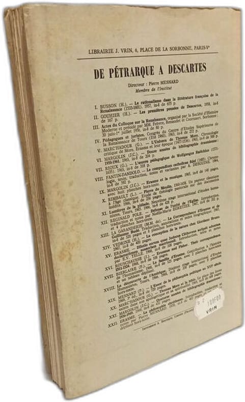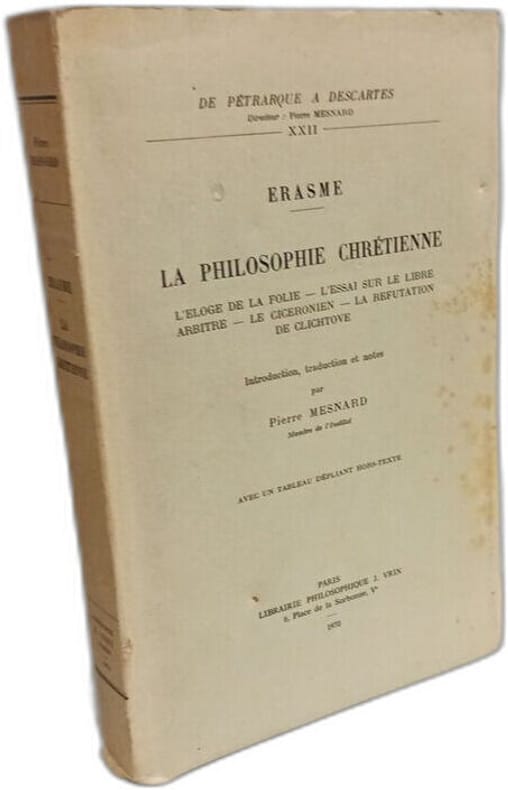 J. Vrin 1970 in8. 1970. Broché. PHILOSOPHIE CHRETIENNE Eloge de la Folie - Essai sur le Libre Arbitre - Le Ciceronien - La Refutation de Clichtove -- Introduction traduction et notes par Pierre Mesnard - Avec un tableau dépliant hos-texte