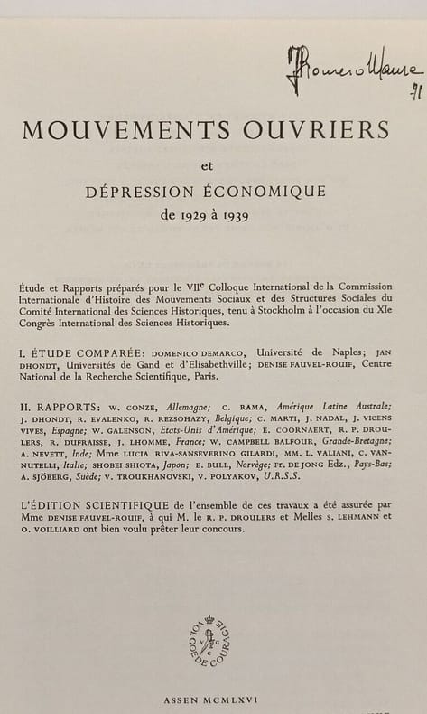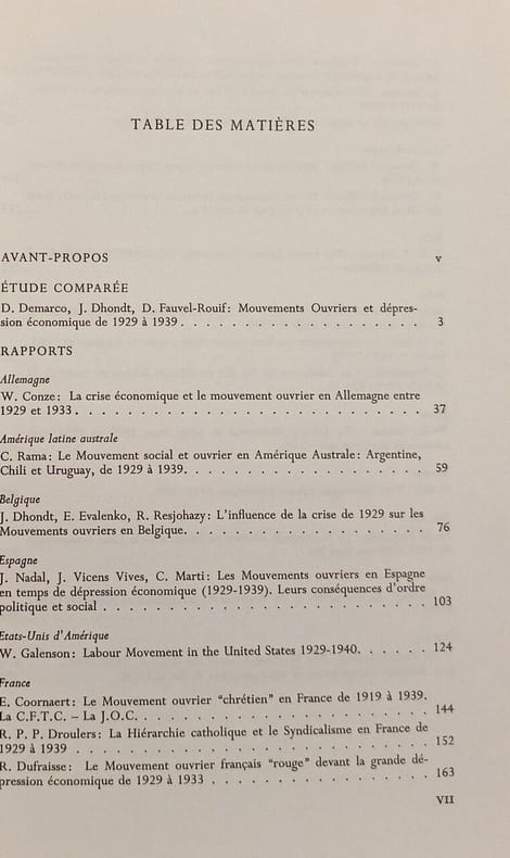 Contributions largement internationales, dont celles d'Émile Coornaert, de Droulers, Dufraisse pour la France. - - VENTE PAR CORRESPONDANCE UNIQUEMENT - LIEN DE PAIEMENT, NOUS CONSULTER.