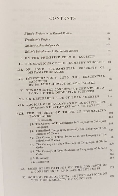 First English edition of 17 papers by Tarski including 'The Concept of Truth in Formalized Languages'. The papers have been revised by Tarki himself, bibliographical and historical notes have been added.