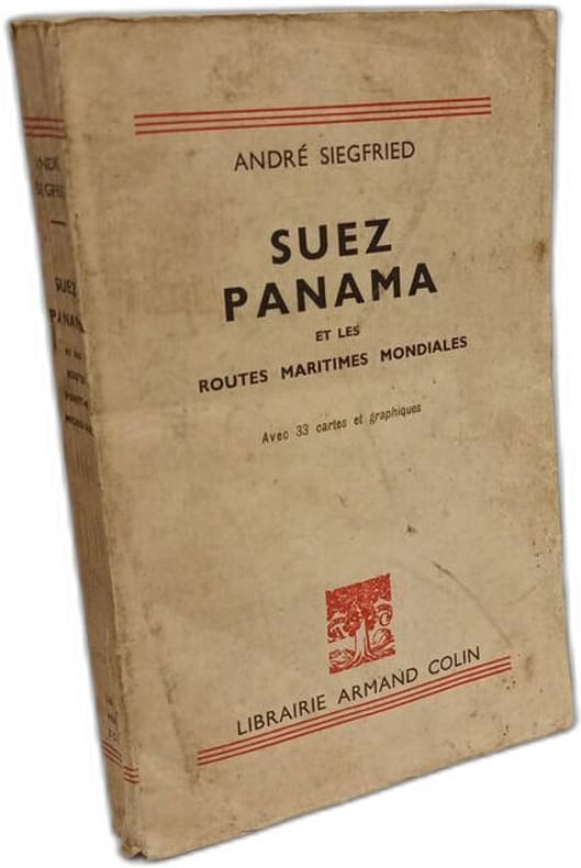 L'édition originale date de 1940. "Par suite des événements qui bouleversent l'Orient européen, le monde entier tient actuellement les yeux fixés sur l'Egypte et sur le Canal de Suez ; d'autre part, l'entrée des Etats-Unis dans la guerre confère un regain d'actualité au Canal de Panama. C'est donc une singulière fortune pour quiconque désire être renseigné sur deux voies maîtresses du commerce international, qu'un écrivain aussi brillant que M. André Siegfried ait, en pleine guerre, consacré son talent d'économiste et de géographe à leur étude aussi complète et exhaustive que possible. Tous les livres de M. Siegfried, quelle que soit leur solidité et l'ampleur de leur documentation, se recommandent par le charme extrême qu'on éprouve à les lire, L'auteur excelle à pimenter par des souvenirs personnels, par des anecdotes bien choisies, par d'heureuses et frappantes formules, ce que ces graves exposés bourrés de faits et de chiffres pourraient avoir d'un peu lourd à digérer. A cet égard, le présent livre est un chef-d'œuvre (...) Mais surtout, l'auteur a mis admirablement en lumière le rôle directeur de certains hommes. Et d'abord et avant tout, de Ferdinand de Lesseps, ce créateur, ce génie de l'action, qui a ouvert une grande route mondiale et transformé les conditions commerciales de la moitié du monde. M. Siegfried rehabilite vigoureusement sa mémoire obscurcie par l'échec du Panama, par les procès et le scandale qui l'ont suivi. D'autre part, pour le Panama, mentionnons le rôle du Président Théodore Roosevelt et celui de Philippe Bunau-Varilla, dont l'intervention durant la période des préliminaires fut à deux reprises décisive, et sans lequel le canal ne se serait peut-être pas fait à Panama, mais au Nicaragua. Rien ne montre mieux l'importance que M. Siegfried a donnée à cette évolution historique que le fait qu'elle occupe dans son ouvrage non moins de 108 pages de texte sur 284..." (Maurice Zimmermann, Les Etudes rhodaniennes, 1942)