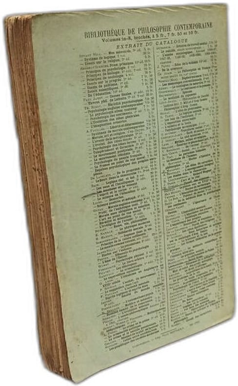 Félix Alcan, Paris. 1903. In-8. Broché. Bon état, Couv. légèrement passée, Dos satisfaisant, Intérieur acceptable. 406 pages. Etiquette de code sur la couverture. Quelques tampons de bibliothèque. Annotations en page de faux-titre (ex-libris). Quelques annotations au crayon dans le texte.. . . . Classification Dewey : 100-PHILOSOPHIE ET DISCIPLINES CONNEXES