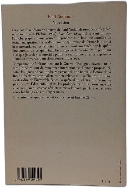 Non lieu. 2014. In-12. Broché. Bon état, Couv. convenable, Dos satisfaisant, Intérieur frais. 68 pages - dédicace de l'auteur sur la page de garde (photo disponible) - quelques encres en noir et blanc dans le texte - étiquette collée sur le 1er plat.. . . . Classification Dewey : 97.2-Dédicace, envoi