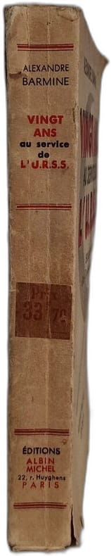 Paris, Albin Michel 1939 In-8 20 x 13 cm. Broché, couverture beige, titre en rouge et noir sur le dos et le premier plat, 382 pp., 24 illustrations hors-texte, table des matière Alexandre Barmine (1899-1987), officier et diplomate soviétique, fuit les purges de l' ère stalinienne pour la France puis les États-Unis,