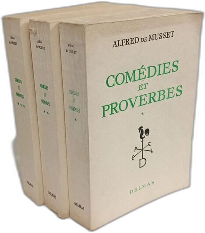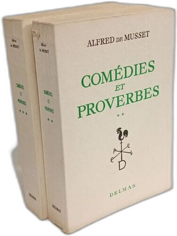 1937 Le Vasseur & Cie., Paris 1937 11 volumes ( dont une suite en noir des 144 planches sous le meme emboitage individuel in 4 brochés couvertures rempliées sous emboitages individuels - 390 pp. + 355 pp. + 391 pp. + 343 pp. + 395 pp. + 266 pp. + 271 pp. + 255 pp. + 307 pp. + 255 pp., Exemplaires n° 227 / 500 ,sur hollande van gelder (2ème papier après 1 + 69 sur Japon impérial et 500 sur Hollande Van Gelder et 2250 exemplaires sur velin de rives). 144 compositions hors-texte en couleurs de Georges LEPAPE, gravés sur cuivre et tirés dans les ateliers de Draeger Frères. Texte encadré d'un filet bleu. Vol. I - "Premières poésies" ; Vol. II - Mélanges de littérature et de critique" ; Vol. III - "Comédies et proverbes I" ; Vol. IV - "Comédies et proverbes II" ; Vol. V - "Comédies et proverbes III" ; Vol. VI - "La confession d'un enfant du siècle" ; Vol. VII - Contes et nouvelles I" ; Vol. VIII - "Contes et nouvelles II" ; Vol. IX - Poésies nouvelles" ; Vol. X - "Oeuvres posthumes". Magnifiques illustrations, état superbe. Très bon ensemble. PH+ A + I
