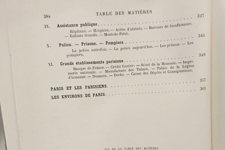 "... Nous avons eu un triple but, auquel correspondent les trois parties de ce livre : présenter le récit des faits où Paris a eu une part, depuis l'attaque de l'humble Lutèce par le lieutenant de César, jusqu'à l'époque trop voisine de nous pour appartenir encore à l'histoire impartiale ; – décrire, dans l'ordre chronologique de leur construction les monuments que l'art de chaque siècle a élevés pour l'embellissement de la capitale, depuis les arènes romaines retrouvées rue Monge, jusqu'au palais du Trocadéro ; – faire connaître enfin l'histoire et l'organisation actuelle de l'administration municipale, en comparant le présent au passé, ce qui revient à montrer la marche incessante de Paris dans la voie du progrès et de la civilisation..." (Introduction)