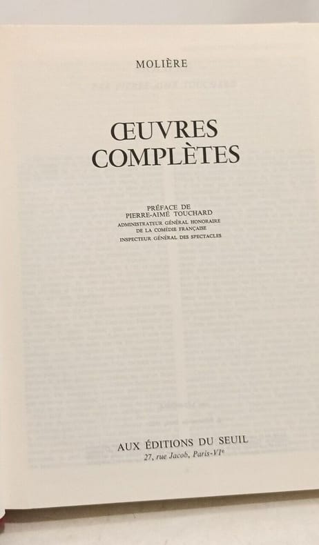Jean-Baptiste Poquelin dit Molière est un comédien et dramaturge français, baptisé le 15 janvier 1622 en l'église Saint-Eustache à Paris et mort dans la même ville le 17 février 1673 Merci de nous contacter à l'avance si vous souhaitez consulter une référence au sein de notre librairie.