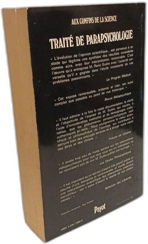 Payot "Bibliothèque scientifique" 1956, in-8 broché, 493 p. (petite auréole sans gravité dans le coin inférieur des cent dernières pages, sinon très bon état) Première édition d'une étude ambitieuse et sérieuse sur les phénomènes parapsychologiques ou métapsychiques.