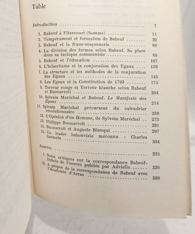 Sommaire : Intro et bibliographie des ouvrages de Dommanget sur Babeuf et le babouvisme - I. Les hommes : Babeuf avec 1789 - Babeuf pendant la Révolution - Babeuf pendant la réaction thermidorienne - Buonarroti - Darthé et Sylvain Maréchal - Germain et Bertrand - Lepeletier, Antonelle, Delon, etc - II. Les faits - Le mouvement panthéoniste - Buts, origine et stucture de la Conjuration - Organisation de la propagande - L'action babouviste - Arrestation et emprisonnement de babouvistes - Le procès des Egaux - La condamnation - Les survivants du drame - III. Les idées... Classification Dewey : 947-Europe de l'Est, URSS