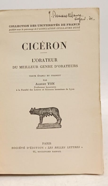 Paris, Société d’Edition Les Belles Lettres 1964, 200x130mm, CCIII - 196pages, broché. Nom du possesseur sur le bas de la page de garde supérieure, autrement bel exemplaire.