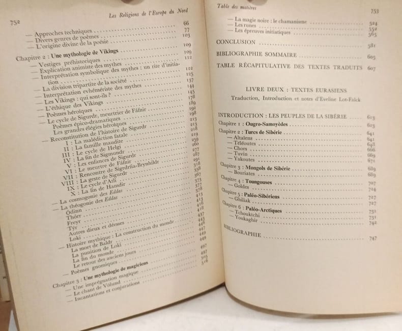 Fayard/Denoel Paris 1974 In-8 ( 240 X 165 mm ) de 744 pages, cartonnage fraise sous jaquette illustrée. Edddas - Sagas - Hymnes chamatiques. Le trésor spirituel de l'humanité. Bon exemplaire