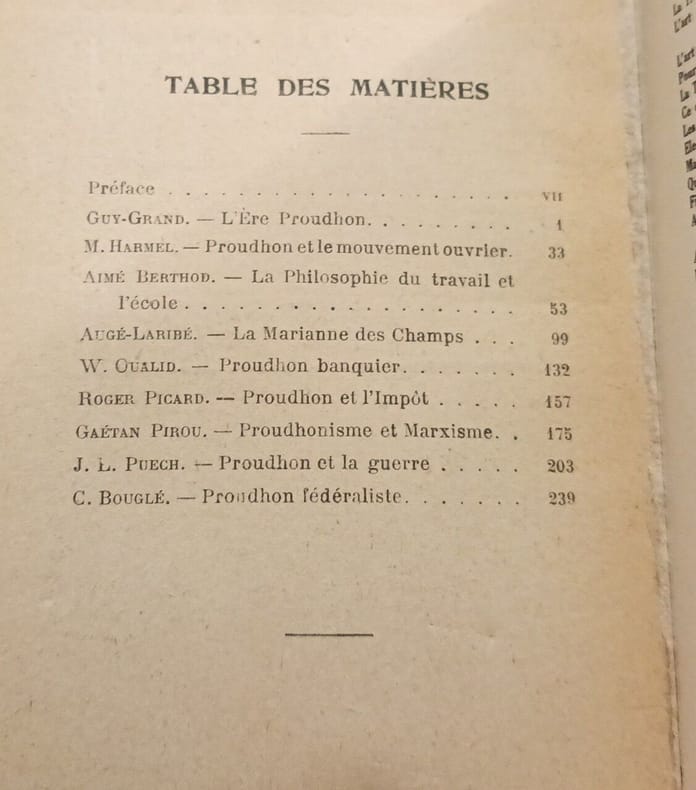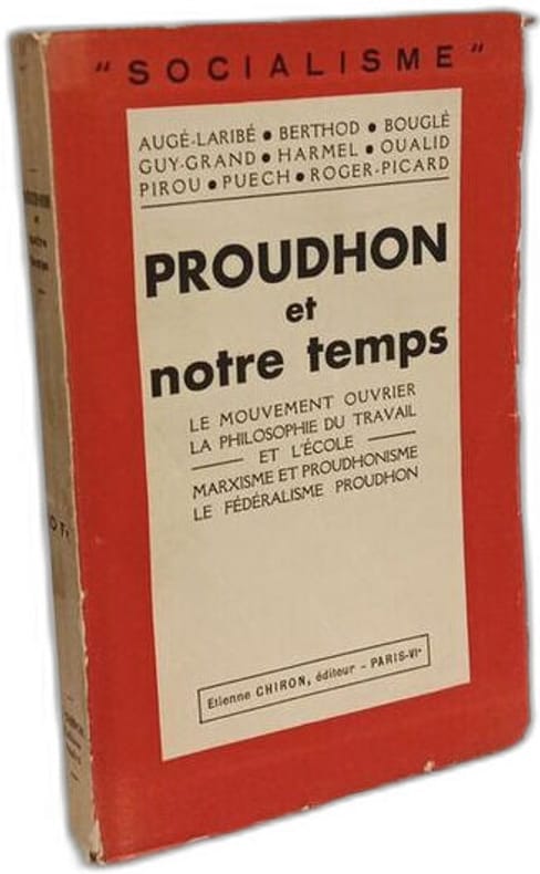 Paris, Etienne Chiron, 1920. Coll. des "Amis de Proudhon", "Bibliothèque de Philosophie moderne". In-8 broché rouge et blanc, non coupé, 255 p. Préface de C. Bouglé. Bon état.... Le Mouvement ouvrier - La Philosophie du travail et l'école - Marxisme et Proudhinisme - Le Fédéralisme Proudhon.