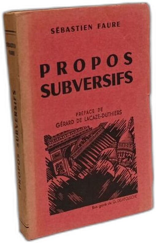 Pour Sébastien Faure (1858-1942), le « commis-voyageur de l’anarchie », comme l’a écrit Zévaès, il y a des « métiers haïssables » que tout homme libre doit s’interdire d’exercer, car ils concourent au maintien d’un édifice pourri, avec lequel ils sont condamnés à disparaître. On n’a pas de peine à deviner lesquels : juge, soldat, prêtre, policier (avec ou sans uniforme), etc. sont de ceux-là. Quant aux professions libérales, tout dépend de la valeur morale de ceux qui les pratiquent, éducateurs, médecins, avocats, artistes, journalistes, etc. Au sujet de ces derniers, Sébastien Faure va nous dire : « Le journalisme est le métier le plus honorable si on l’accomplit dans certaines conditions ; c’est le métier le plus méprisable, si l’on n’y attache pas sa conscience et sa dignité. » Le cinéma ne vaut pas mieux. « O cinéma, toi qui pourrais tant servir à éduquer les foules, comment se fait-il que tu ne serves qu’à leur abrutissement ? » Sébastien Faure nous dit sa vision libertaire du monde et ses idées sur le "chambardement" nécessaire. Ces "propos subversifs" sont des munitions pour l'intelligence. "Ni maitre, ni esclave".