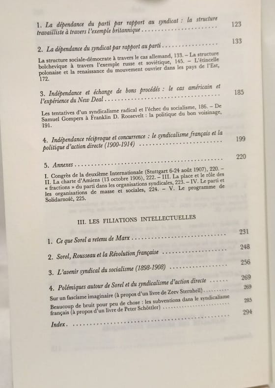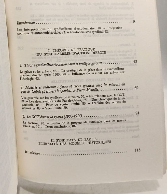 1ère édition de ce recueil d'études - inédites ou parues en revues (et "conservées sous leur forme initiale" ou "complètement refondues") - de l'historien, syndicaliste et journaliste Jacques JULLIARD (1933-2023): "Le mouvement ouvrier à l'état naissant ne se présente jamais comme une théorie mais comme une série de pratiques, dont les deux plus importantes sont l'association et la grève. Tel est le cas du syndicalisme, tantôt désigné comme anarcho-syndicalisme, tantôt comme syndicalisme révolutionnaire, et dont Jacques JULLIARD montre ici qu'il fut avant tout un syndicalisme d'action directe. C'est sa rencontre avec le socialisme, mouvement d'origine idéologique, dirigé en général par des intellectuels bourgeois, qui donne au syndicalisme ses principaux traits politiques. A partir des exemples anglais, allemand, russe, américain et polonais, l'auteur décrit comment les principales figures du mouvement ouvrier et socialiste - travaillisme, social-démocratie, bolchevisme, collective bargaining, action directe - ont été modelées, dès l'origine, par les formes particulières à chaque pays des relations entre les syndicats et les partis socialistes. Chaque fois que le mouvement ouvrier est d'influences extérieures, il revient obstinément à la valeur fondamentale qu'est pour lui l'autonomie, et aux formes d'organisation qui en découlent. C'est ce qui confère au cas français son double caractère: marginalité et exemplarité." (4è de couverture); index des noms.