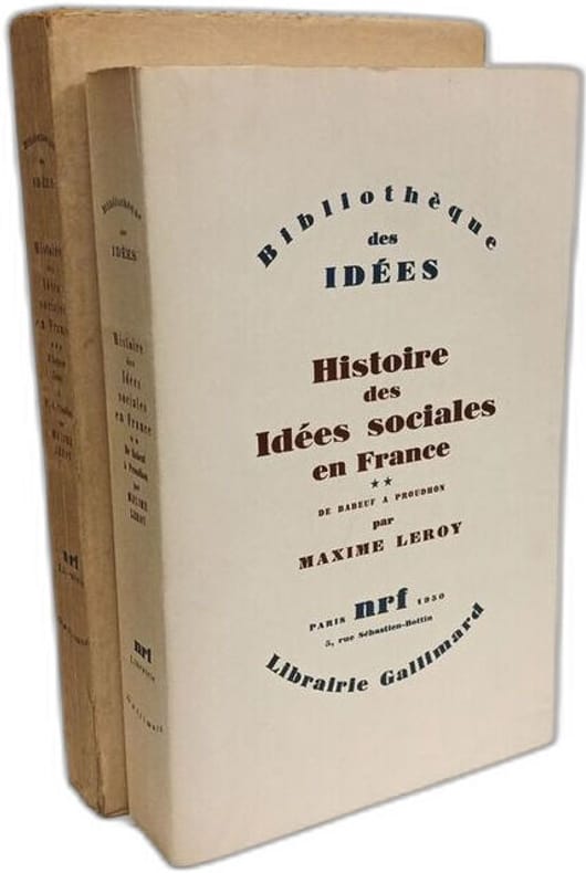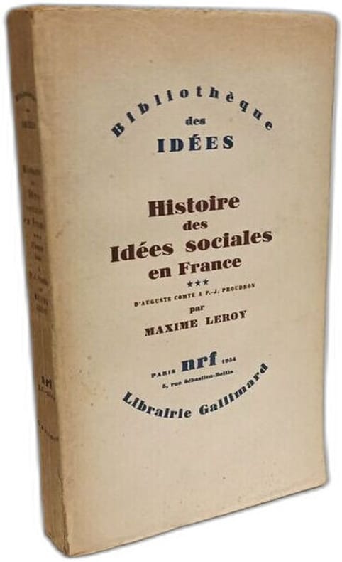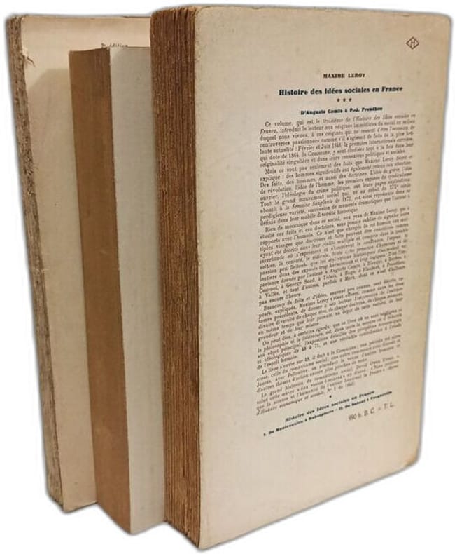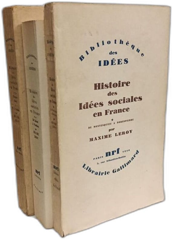 Gallimard in8. Sans date. Broché. 3 volume(s). Histoire des idées sociales en France - TOME I: De Montesquieu à Robespierre (1946) + TOME II: de Babeuf à Proudhon (1950) + TOME III: D'Auguste Comte à P.J. Proudhon (1954) / Bibliothèque des idées