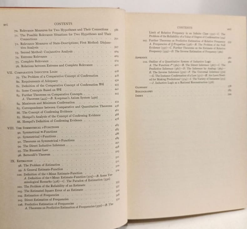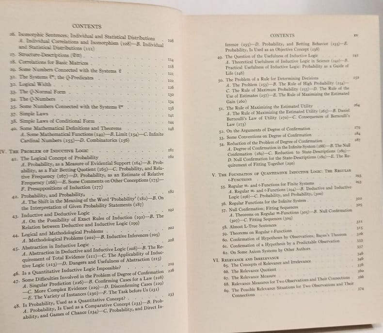 First edition of Carnap’s important work on inductive logic which “led to a renaissance in the use of probability theory to model the inductive process” (Cambridge Companion to Carnap). He here turned his attention away from the more traditional deductive inferential frameworks on which he had so far primarily focused and towards the newer probabilistic and statistical frameworks now being constructed and applied with increasing frequency in the physical, biological, and social sciences. Rudolf Carnap (born 1891 in Ronsdorf, Germany, died 1970 in Santa Monica, California) was an immensely influential analytic philosopher, who has contributed decisively to the fields of logic, epistemology, semantics, philosophy of science, and philosophy of language. He was one of the leading figures of the Vienna Circle, and a prominent logical positivist. He studied philosophy, physics and mathematics at the universities of Berlin and Freiburg, and worked at the universities of Jena, Vienna and Prague until 1935, when he, due to the war, emigrated to the U.S., where he became an American citizen in 1941. In America he became professor of the University of Chicago.