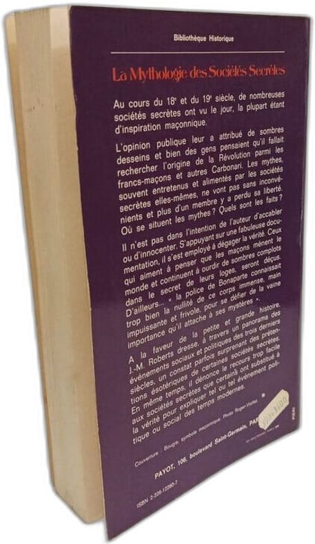 PAYOT Bibliothèque Historique. 1979. In-8. Broché. Bon état, Couv. convenable, Dos satisfaisant, Intérieur frais. 346 pages.. . . . Classification Dewey : 366.5-Sociétés secrètes