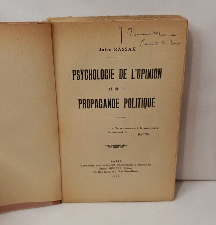 Librairie des sciences politiques et sociales 1927 in12. 1927. Broché.