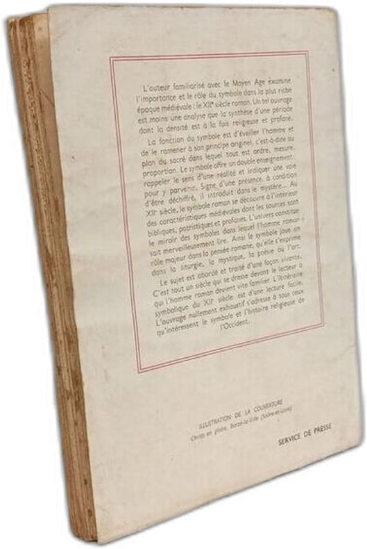 Paris, Flammarion, 1955. In-8, br, 236p. Avec 3 figures et 17 planches h.t. Table : Le sens d'un enseignement - Les sources du symbolisme romain - La maison de Dieu - Présence du symbole.Intérieur frais. Couv. défraichie.
