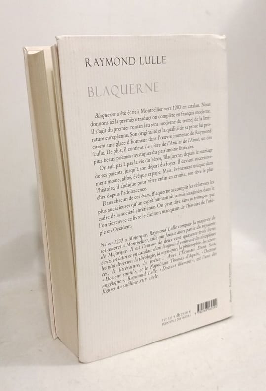 Blaquerne a été écrit à Montpellier vers 1283 en catalan. Nous donnons ici la première traduction complète en français moderne. Il s'agit du premier roman (au sens moderne du terme) de la littérature européenne. Son originalité et la qualité de sa prose lui procurent une place d'honneur dans l'œuvre immense de Raymond Lulle. De plus, il contient Le Livre de l'Ami et de l'Aimé, un des plus beaux poèmes mystiques du patrimoine littéraire.On suit pas à pas la vie du héros, Blaquerne, depuis le mariage de ses parents, jusqu'à son départ du foyer. Il devient successivement moine, abbé, évêque et pape. Mais, événement unique dans l'histoire, il abdique pour vivre enfin en ermite, son rêve le plus cher depuis l'adolescence.Dans chacun de ces états, Blaquerne accomplit les réformes les plus audacieuses qu'un esprit humain ait jamais imaginées dans le cadre de la société chrétienne. On peut dire sans se tromper que l'on tient avec ce livre le chaînon manquant de l'histoire de l'utopie en Occident. Très bon état d’occasion