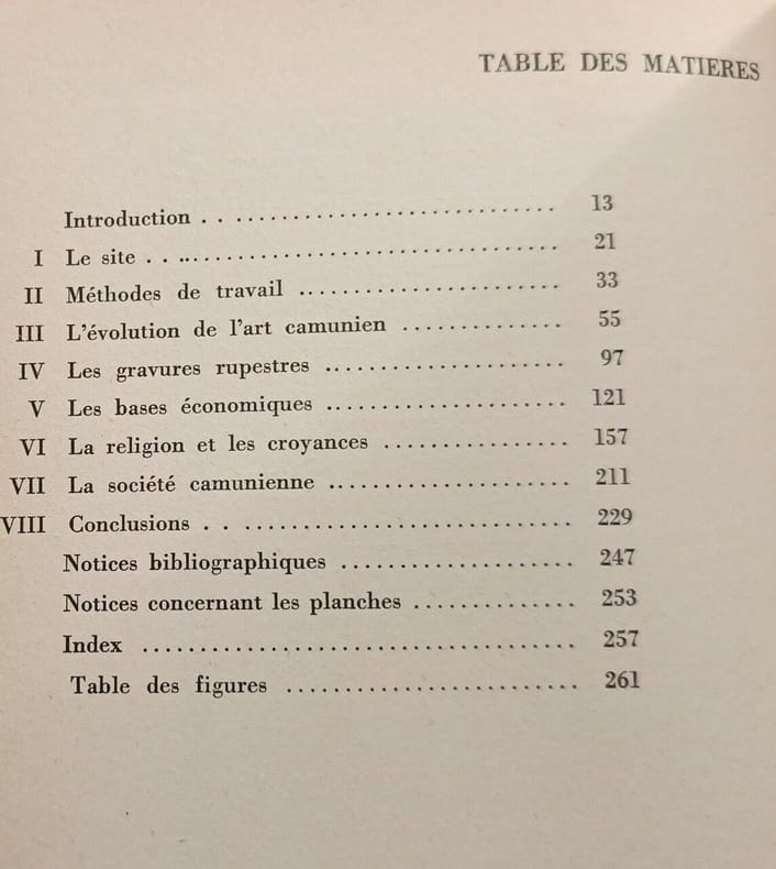 Sommaire : le site - méthodes de travail - l'évolution de l'art camunien - les gravures rupestres - les bases économiques - la religion et les croyances - la société camunienne - conclusions. Classification Dewey : 909-Civilisation