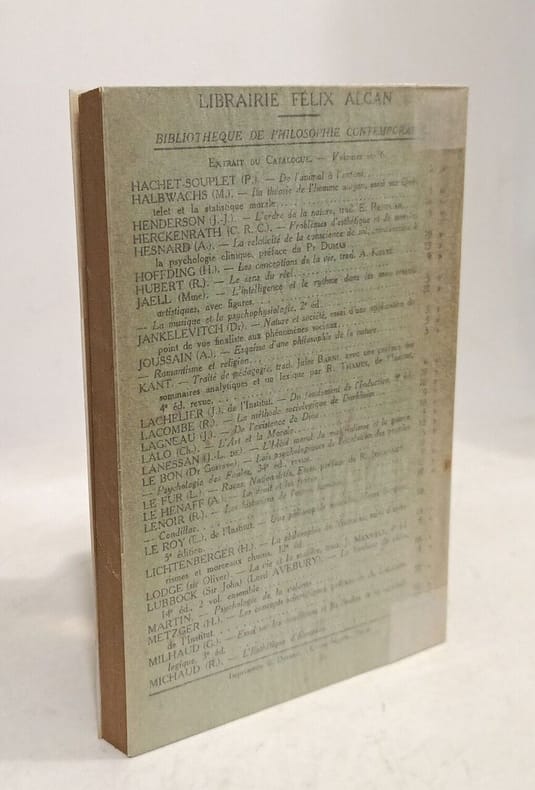 ARMAND COLIN. 1903. In-12. Relié. Etat d'usage, Coins frottés, Dos satisfaisant, Intérieur acceptable. 198 pages - contre plats jaspés - coins légèrement frottés - titre + auteur + filets dorés sur pièce de titre marron - ex libris de la bibliothèque maurice boucher sur le 1er contre plat.. . . . Classification Dewey : 100-PHILOSOPHIE ET DISCIPLINES CONNEXES