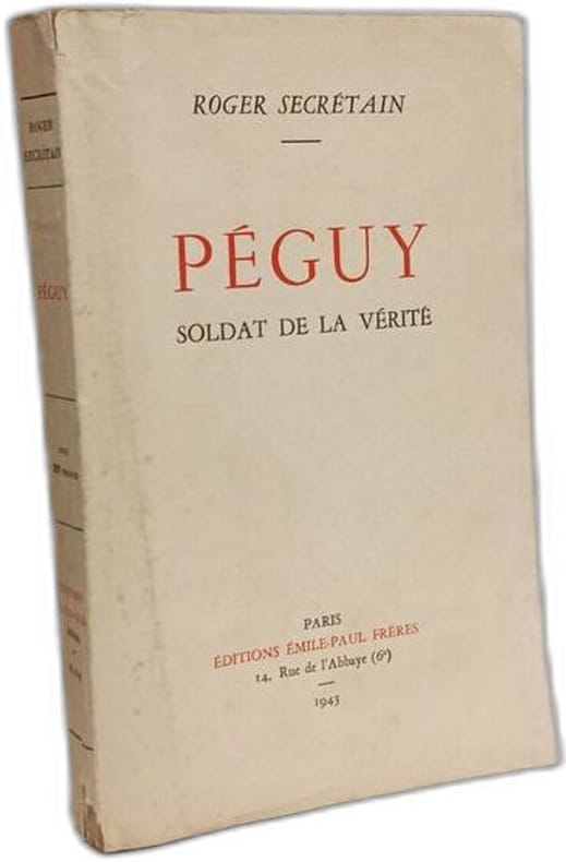 Broche bon etat . Interieur propre . Coiffe et pied de dos abimes. 297 pages. 1943. PEGUY. SOLDAT DE LA VERITE.