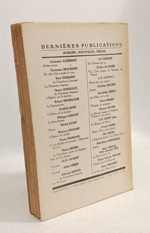 Plon 1943 in12. 1943. Broché.