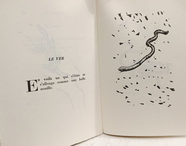 Jules Renard, Auguste Roubille (illustrateur), Histoires naturelles. Paris, M Brucker, 1928. In-8, [6]-209p. Belle édition illustrée par Roubille et tirée à 220 exemplaires, un des 160 exemplaires sur vélin d'Arches. Les lithographies sont le frontispice et des illustrations à mi-page en tête de chacune des 85 histoires. Broché, couverture rempliée Bel illustré peu commun.